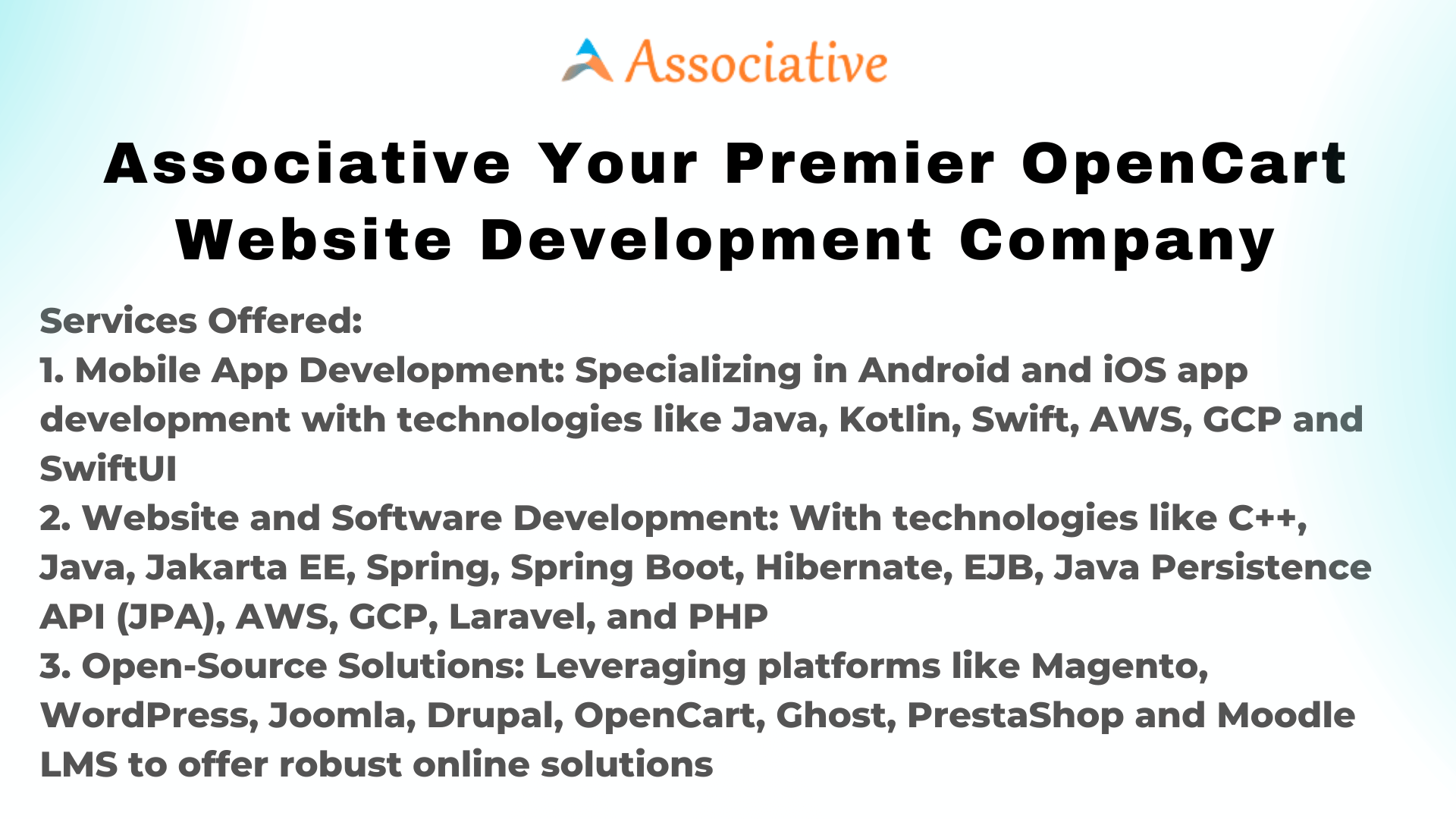 Associative, a distinguished partnership firm situated in the vibrant city of Pune, particularly in Lohegaon, is recognized for its excellence in software development. In this blog post, we will introduce you to the diverse range of services provided by Associative, with a special emphasis on our prowess as an OpenCart website development company.