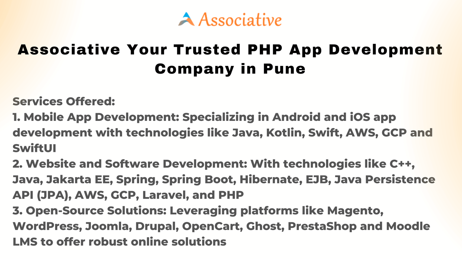 Associative, a well-established partnership firm located in Lohegaon, Pune, has built a strong reputation as a leading player in the field of software development. In this blog post, we will introduce you to the comprehensive range of services offered by Associative, with a special focus on our expertise as a PHP app development company.