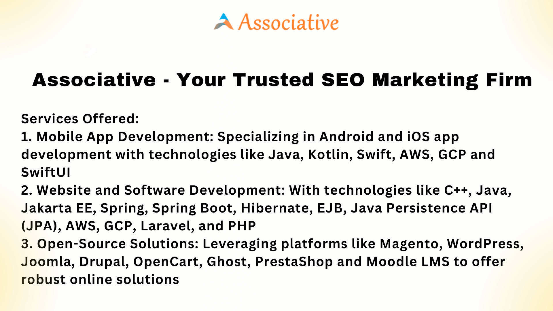 Associative is your trusted SEO marketing firm, and we are here to assist you in reaching your online goals. Reach out to us today to embark on your digital journey and experience the power of SEO marketing!