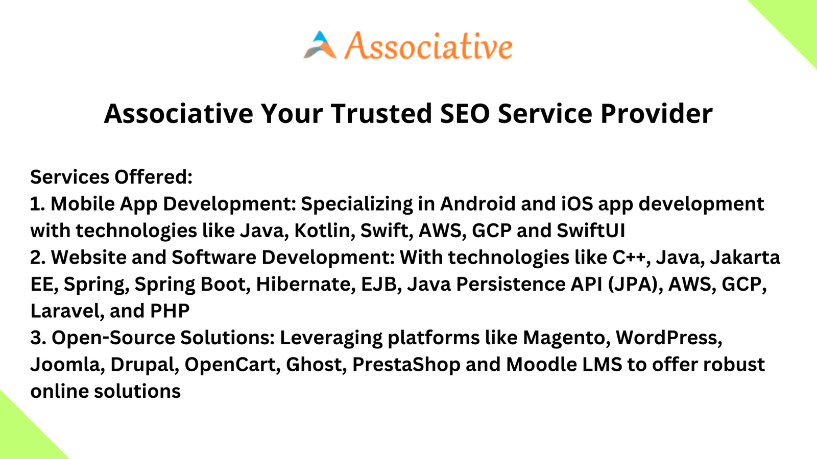 Ready to enhance your online presence and achieve digital success through effective SEO strategies? Contact Associative today. Located in Pune, Maharashtra, we are dedicated to helping businesses succeed in the digital realm.