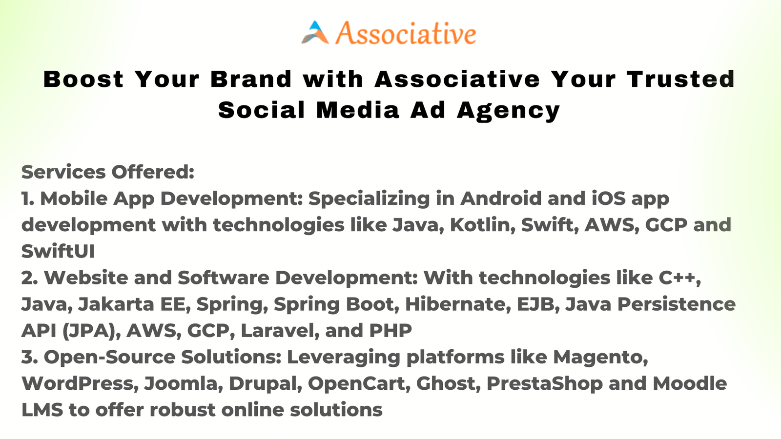 Associative, a distinguished partnership firm headquartered in the vibrant city of Lohegaon, Pune, has established itself as a trailblazer in the software development industry. In this blog post, we are thrilled to introduce you to our wide array of services, with a special focus on our role as a leading social media ad agency.