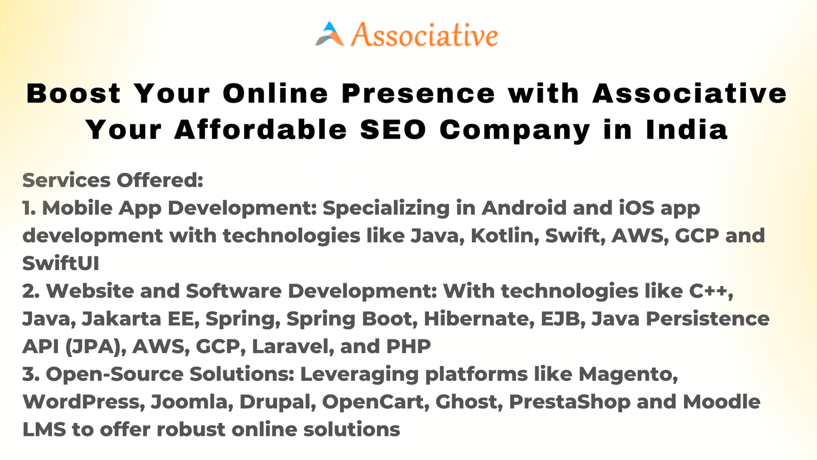 2. Affordability: As an affordable SEO company in India, Associative offers cost-effective solutions that won\’t break the bank. They believe that every business, regardless of its size, should have access to high-quality SEO services.