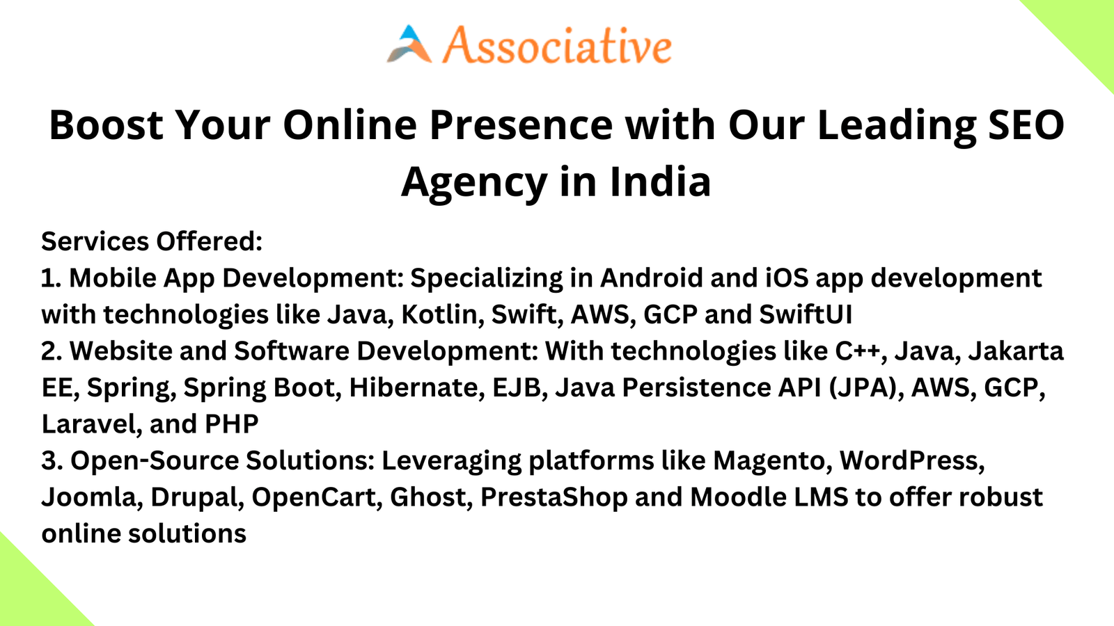 Associative, a distinguished partnership firm based in Pune, Maharashtra, India, is committed to empowering businesses with our topnotch digital services. As a prominent SEO agency in India, we specialize in enhancing your online presence and driving digital success.