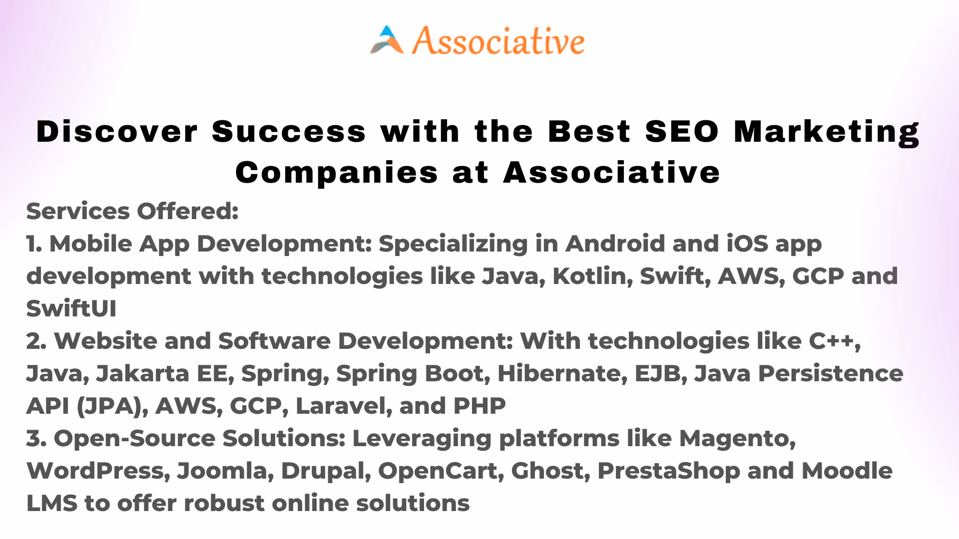 Associative is committed to helping businesses like yours thrive in the digital landscape. If you’re in search of the best SEO marketing companies to optimize your online presence, look no further. Contact us today to discuss how we can elevate your online visibility, attract organic traffic, and drive success to your business.