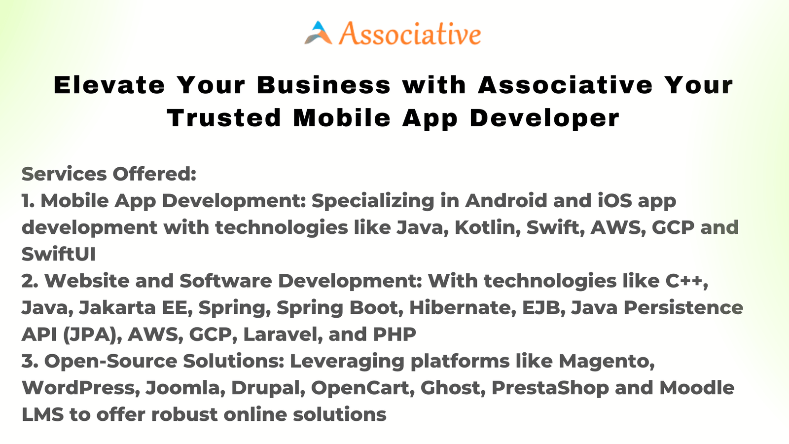 Associative stands out as a trusted and experienced mobile app developer. We understand the unique challenges and opportunities that businesses face in the digital world. Here\’s why you should choose us: