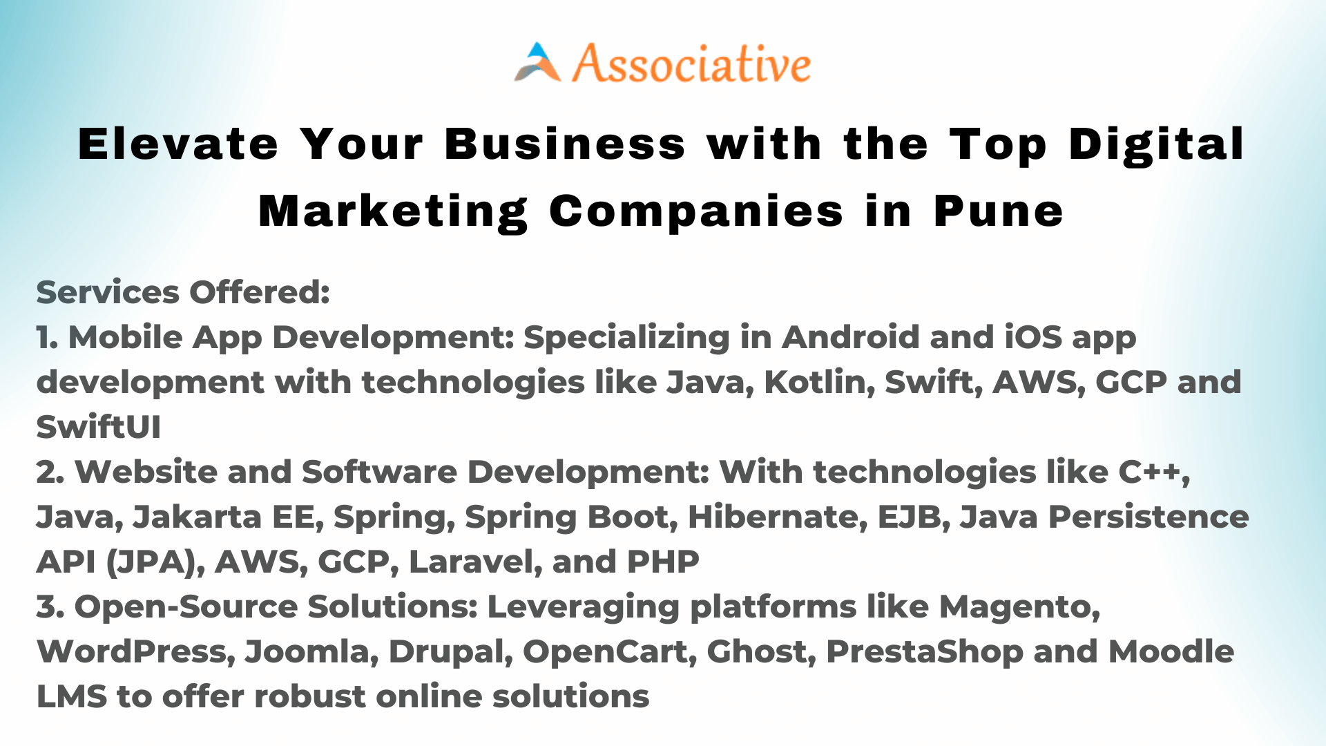 Associative stands out as one of the top digital marketing companies in Pune, offering a range of services tailored to meet your business\’s unique needs. Here\’s why you should consider us for your digital marketing endeavors: