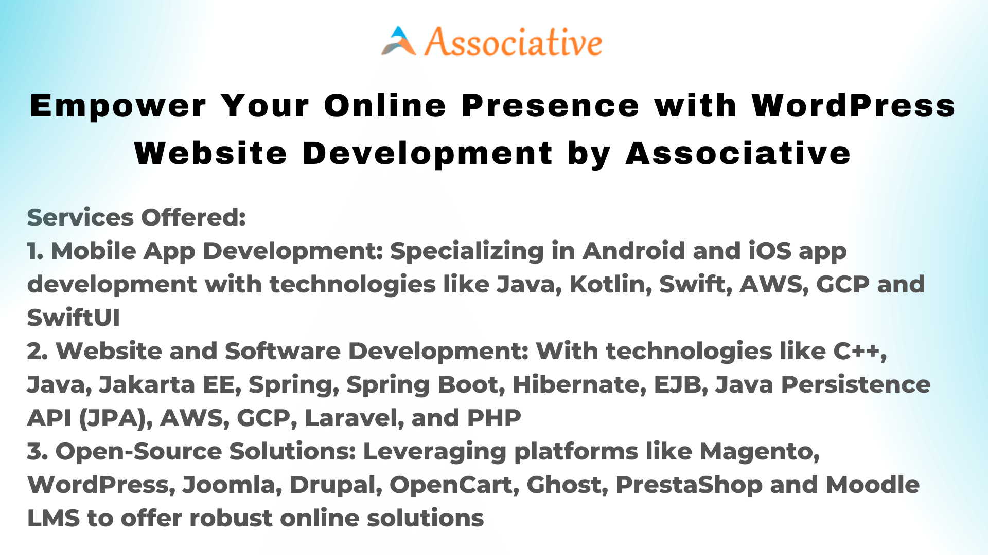 If you\’re searching for WordPress website development services in Pune that combine local expertise with a comprehensive service offering, Associative is the partner you need. Contact us today, and let\’s work together to create a WordPress website that elevates your online presence and drives business growth.