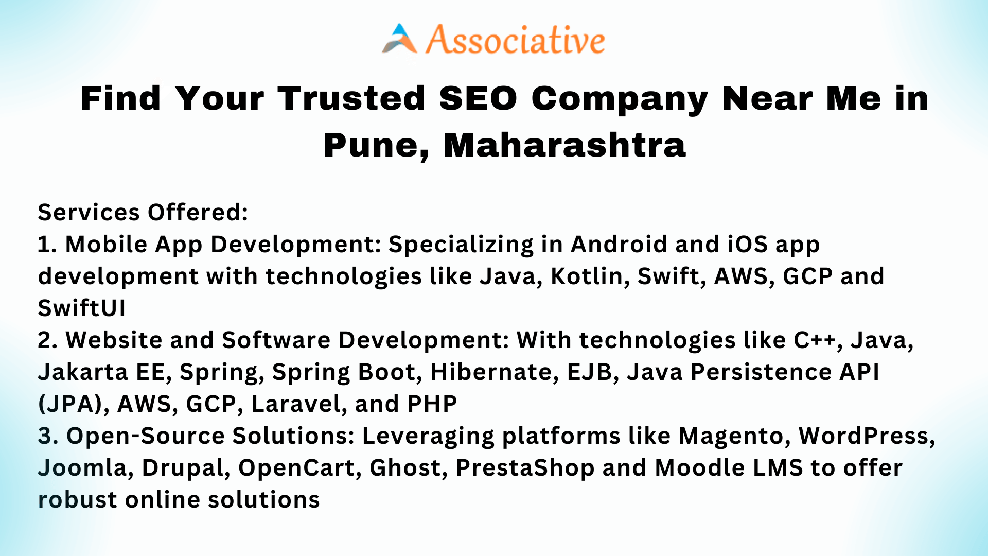 Associative, a prominent partnership firm based in Pune, Maharashtra, India, is your trusted local SEO company, conveniently located near you. We specialize in providing topnotch digital solutions to enhance your online presence and drive digital success in Pune.