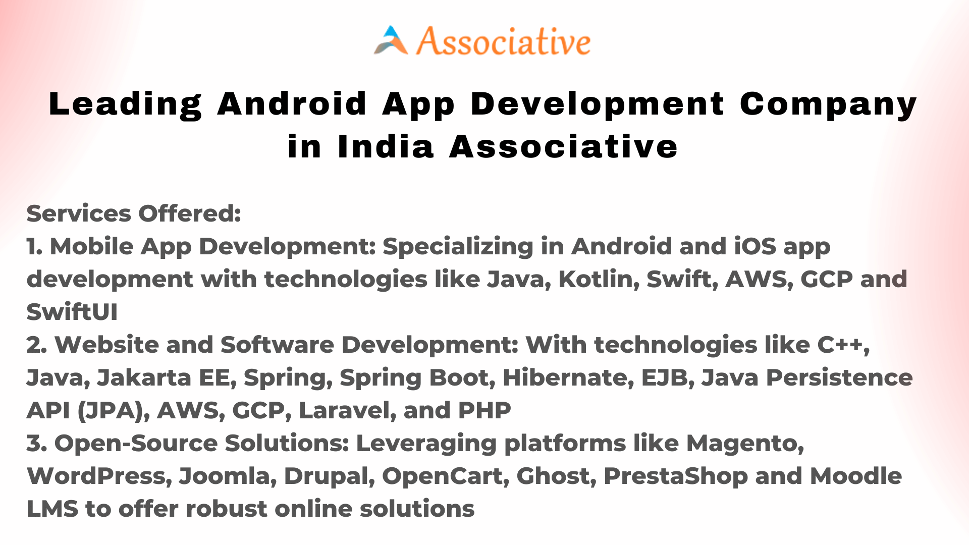 In conclusion, if you’re looking for a leading Android app development company in India, Associative, based in Pune, Maharashtra, India, is your trusted partner. Their diverse range of services, technical expertise, and commitment to quality make them a leader in the field. Elevate your business with Associative’s top-notch Android app development solutions. Contact them today to discuss your project requirements and embark on a journey of digital success. Your path to a successful Android app begins with Associative.