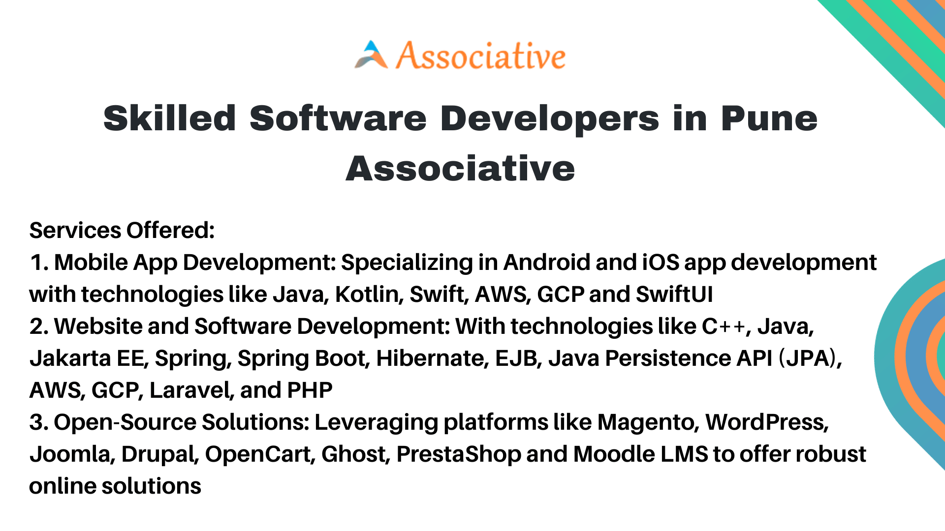 Welcome to Associative, a distinguished partnership firm located in the heart of Pune, Maharashtra, India. We are your trusted destination for expert software development services, right here in the vibrant city of Pune.