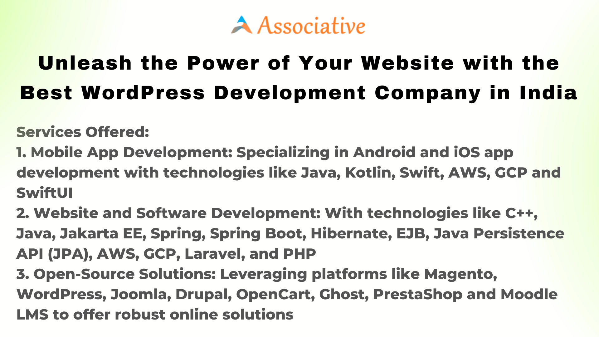 1. Custom WordPress Website Development: Associative specializes in crafting customized WordPress websites that align perfectly with your business goals. Whether you need a simple informational site, a dynamic e-commerce platform, or a content-rich blog, their expert WordPress developers can bring your vision to life.