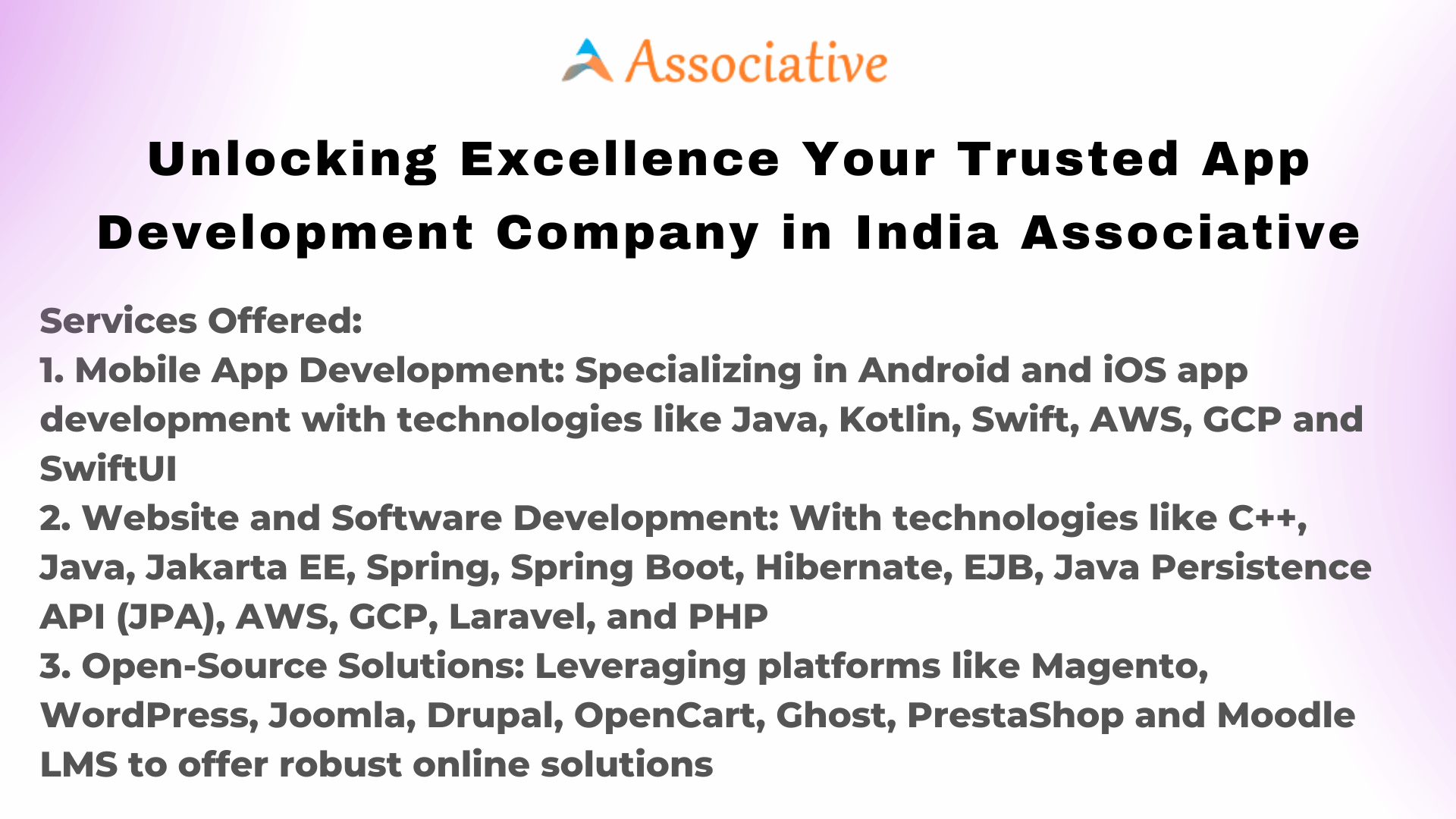 Associative stands as a beacon of innovation and excellence in the world of app development. With a commitment to quality and an unswerving focus on client satisfaction, here\’s why we are your ideal choice for app development in India: