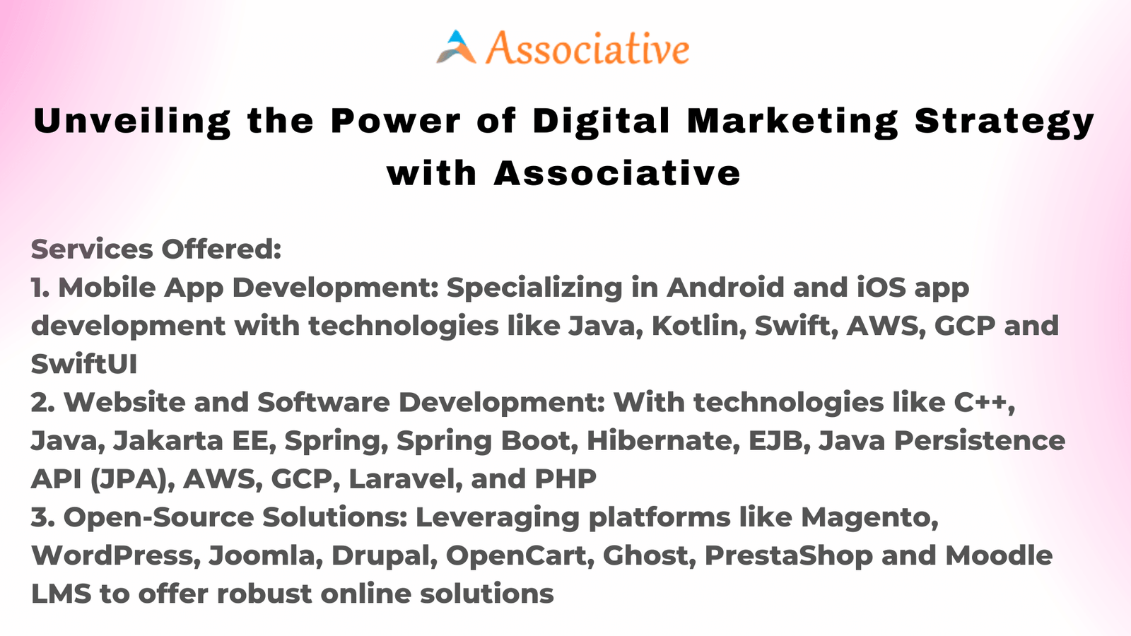In a world where digital presence matters more than ever, a well-thought-out Digital Marketing Strategy is the key to success. Associative, with its expertise in mobile app development, website and software development, and open-source solutions, is your trusted choice in crafting and implementing a winning digital marketing strategy. Don\’t miss out on the opportunities the digital world has to offer – contact Associative today to take your business to new heights with a robust digital marketing strategy!