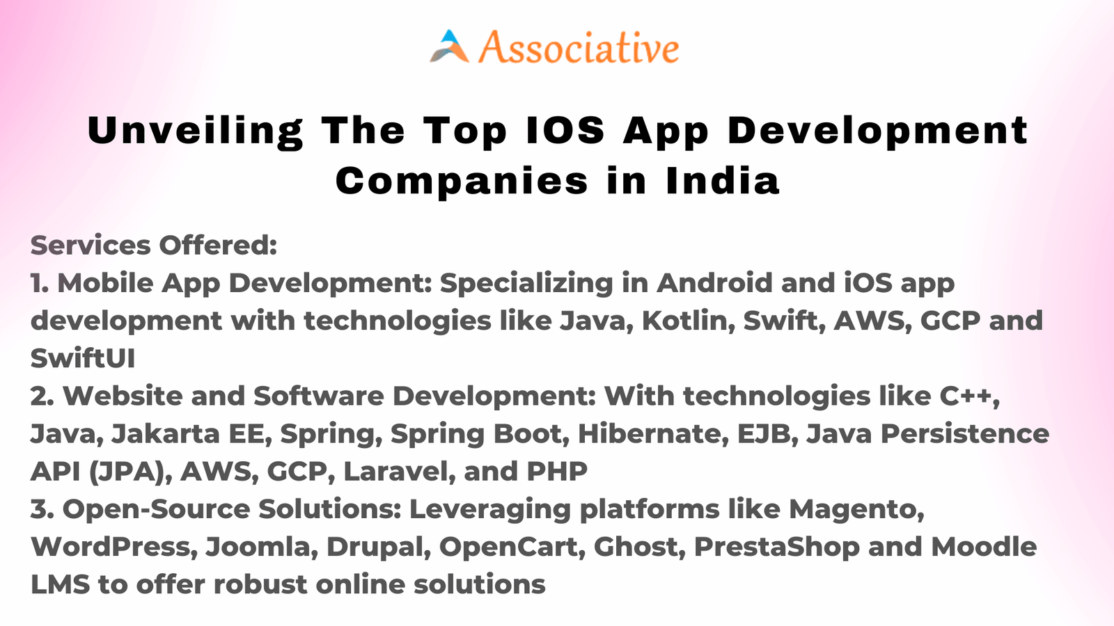 5. Comprehensive Services: Associative doesn\’t stop at app development. We offer a comprehensive suite of services, including website and software development, open-source solutions, and more. This means you can rely on us as your go-to partner for all your digital requirements.