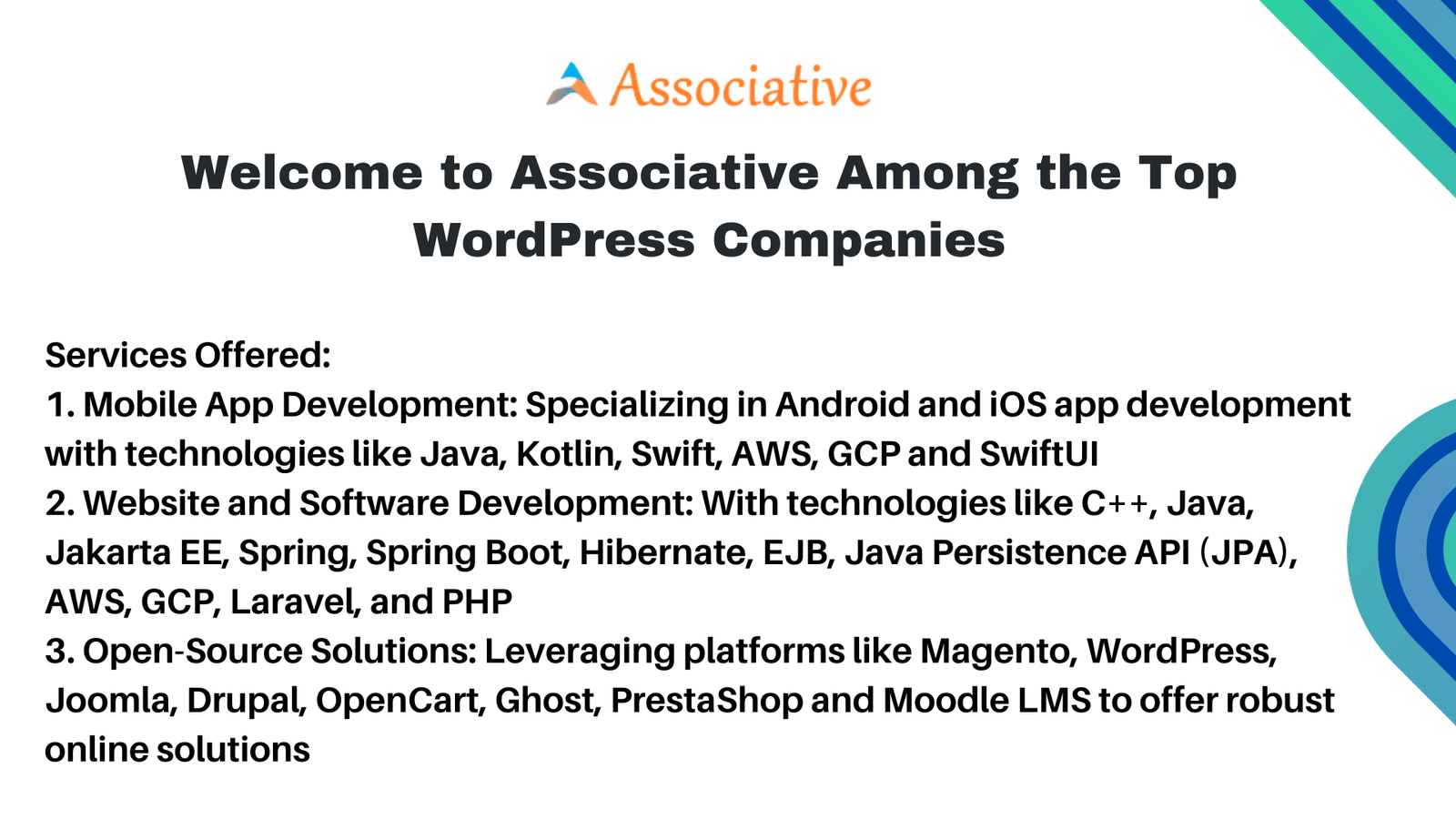 Associative, a renowned partnership firm based in Pune, Maharashtra, India, is your ultimate destination for top-tier WordPress development services. We specialize in creating dynamic and engaging WordPress websites that empower businesses to succeed in the digital landscape.