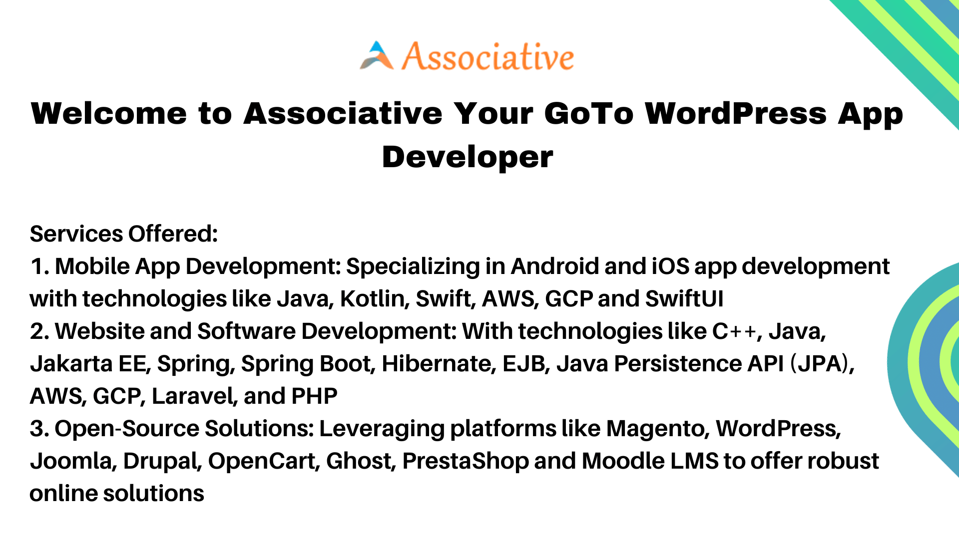 Associative is a prominent partnership firm based in Pune, Maharashtra, India. We are your trusted partner for WordPress app development, dedicated to helping businesses unlock the full potential of this popular content management system. With our skilled team and unwavering commitment to excellence, we are here to provide topnotch WordPress app development services tailored to your needs.