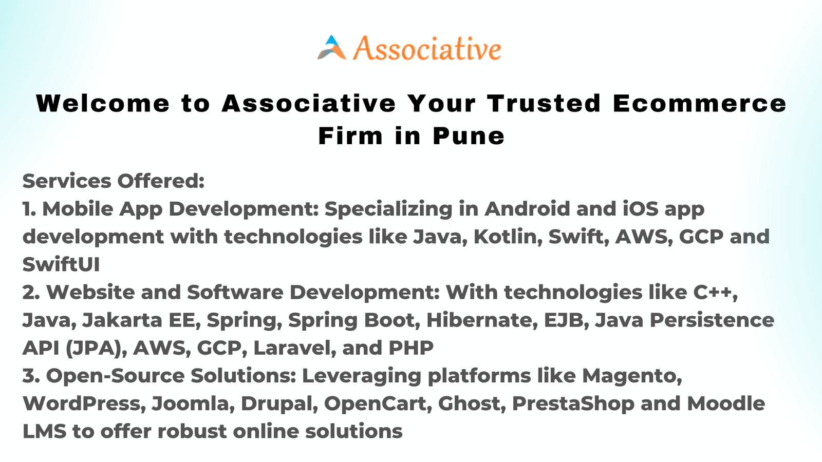 Are you ready to enhance your online presence and drive your business forward? Choose Associative, your trusted ecommerce firm in Pune. We are committed to turning your digital dreams into reality and helping you succeed in the everevolving digital world. Let\’s embark on this journey together!