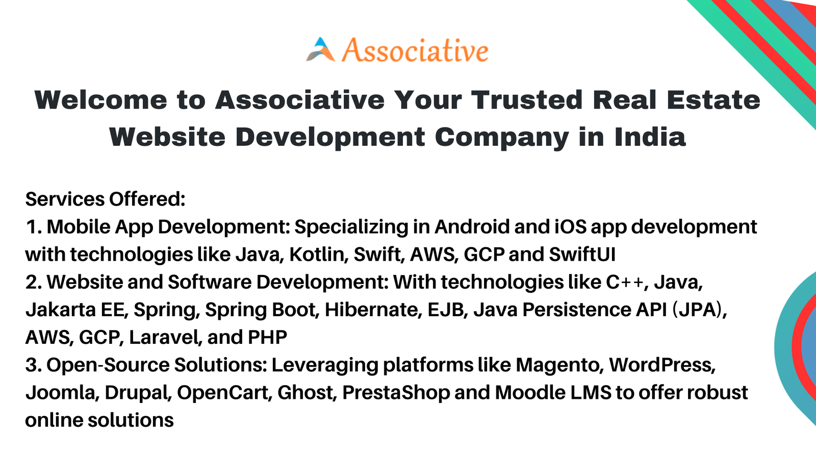 Associative, a prominent partnership firm based in Pune, Maharashtra, India, is your one-stop destination for top-tier real estate website development services. We understand the unique needs of the real estate industry and are committed to providing cutting-edge web development solutions that will elevate your online presence and drive business growth.