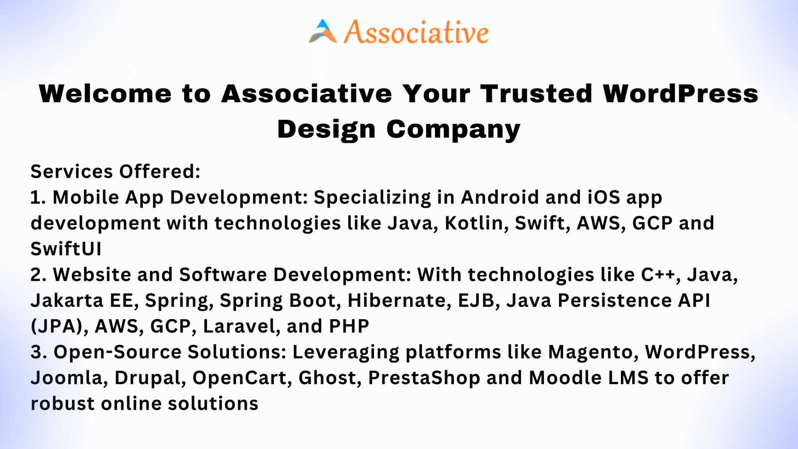At Associative, we offer a comprehensive range of services to help you achieve a standout online presence with WordPress. Here\’s a glimpse of what we can do for you: